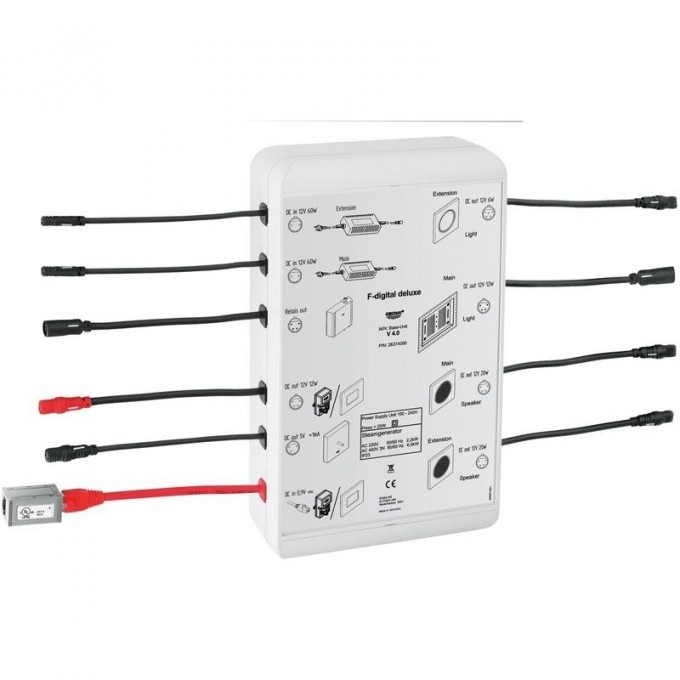 - - 2 соединения для блока питания (максимум для 4 модулей: светового или звукового).